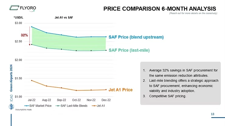 Toh presented an internal analysis outlining how last-mile blending could decrease SAF costs by an average of 32% compared the market price, while maintaining the same carbon reduction attributes. This cost-effectiveness makes it feasible for more airports to integrate SAF into their operations and expands the fuel’s availability across numerous locations.